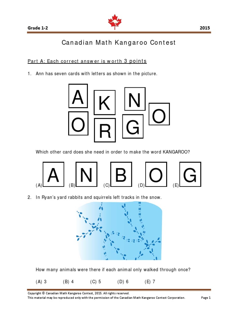 Math kangaroo grade 3-4 pdf. Math Kangaroo Levels 12 Book and Math Kangaroo Levels 34 Book Questions and Solutions. Once a year event always on the third Thursday in March. The Official Canadian Math Kangaroo Contest Website.